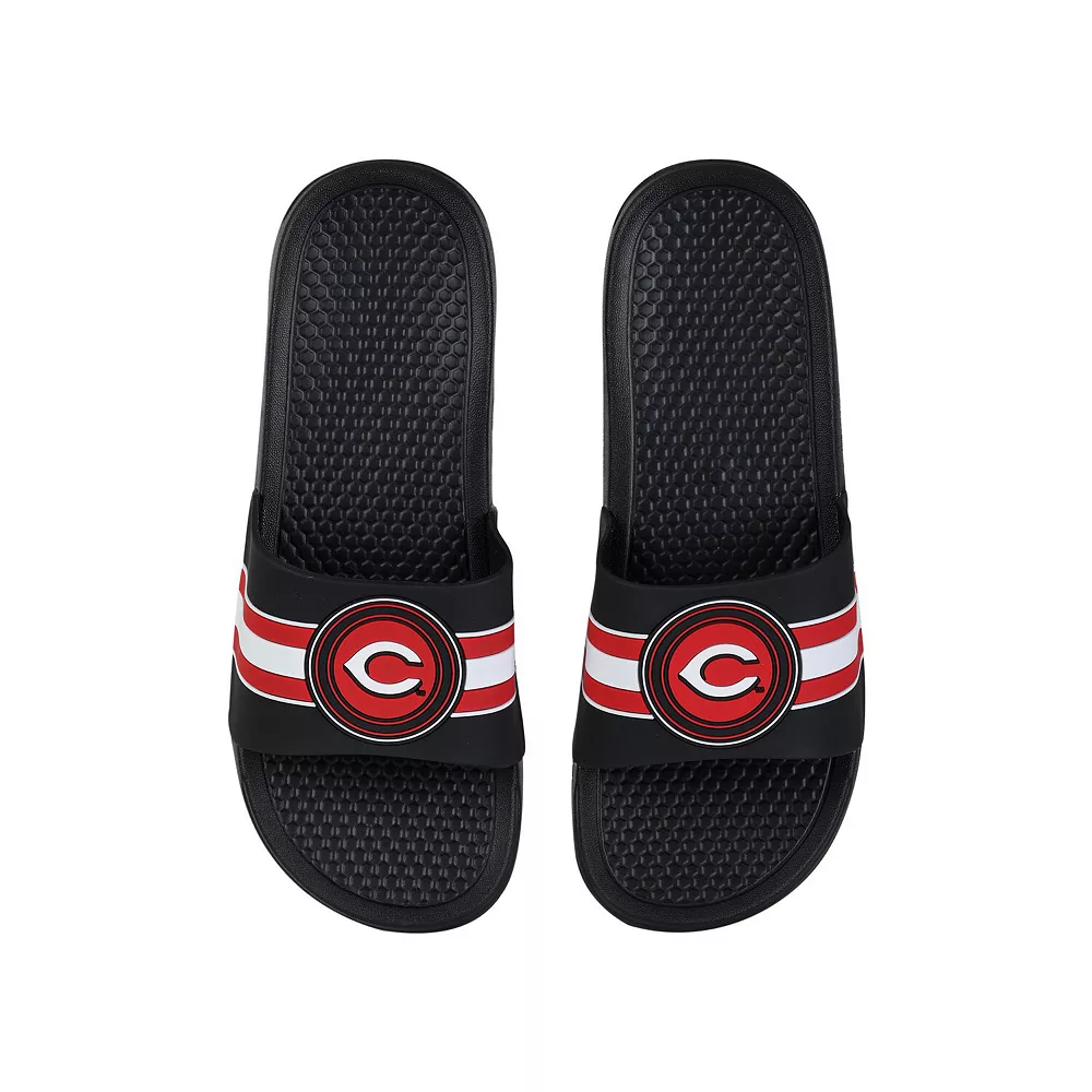 Keep your feet cool in hot weather by wearing these Cincinnati Reds Stripe Raised slide sandals from FOCO. They feature vivid Cincinnati Reds graphics, and the slip-on style makes them easy to use. The textured soles also help prevent you from slipping.
