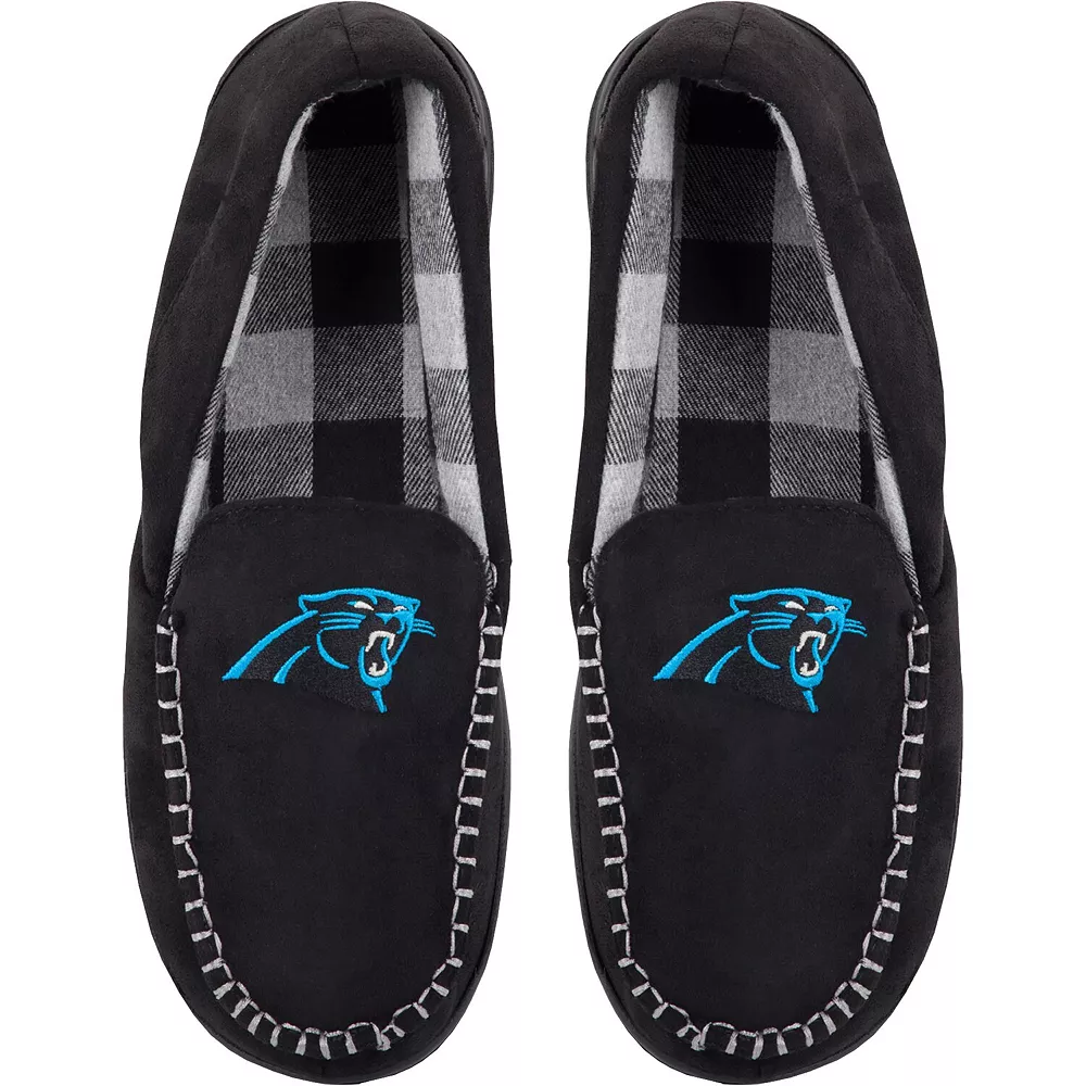 Keep your feet toasty warm while showing your Carolina Panthers pride in these FOCO moccasin slippers. Ideal for lounging at home, the slip-on style and soft flannel lining ensure a comfy fit. The embroidered Carolina Panthers logo and eye-catching stitching make every day look like game day.