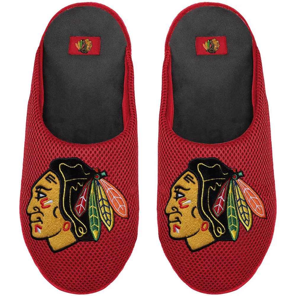 Kick back and keep your Chicago Blackhawks spirits high with these Big Logo Colorblock mesh slippers from FOCO. A must-have for any devout Chicago Blackhawks fan, they provide a soft, warm feel and show off large team graphics and colors. You’ll love putting on these slippers first thing each morning, especially on a cold day.