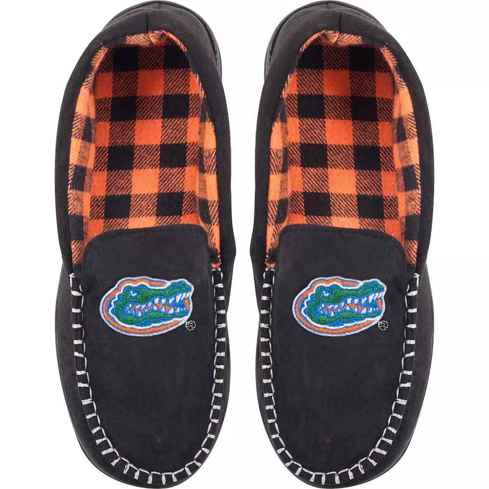 Keep your feet toasty warm while showing your Florida Gators pride in these FOCO moccasin slippers. Ideal for lounging at home, the slip-on style and soft flannel lining ensure a comfy fit. The embroidered Florida Gators logo and eye-catching stitching make every day look like game day.
