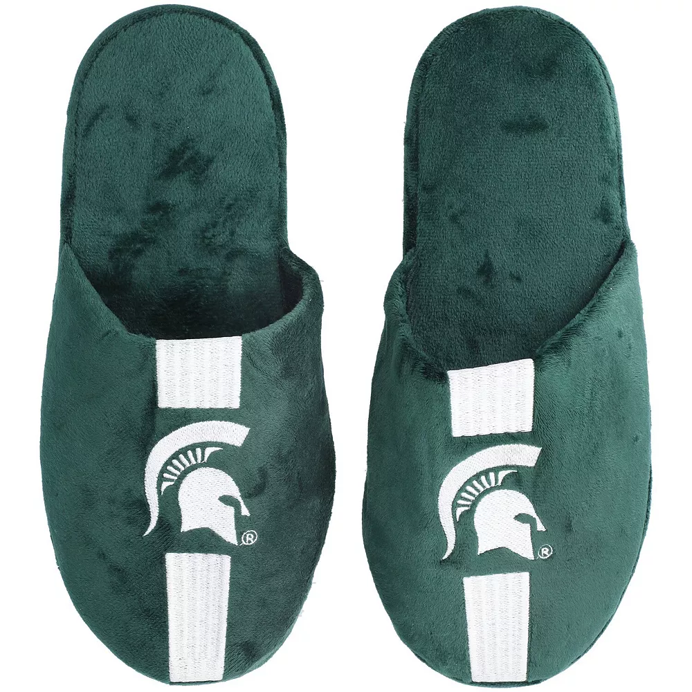 Kick back and relax in these Striped Team slippers from FOCO. Whether it’s game day or just another day full of team spirit, these slip-ons are sure to keep your feet cozy and warm. The embroidered team graphics make these a great addition to your Michigan State Spartans collection.