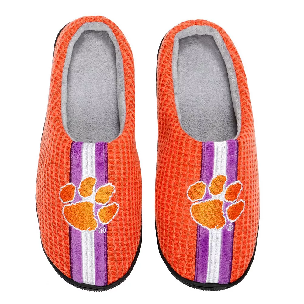 Stay comfortable as you cheer on the Clemson Tigers in these Team Stripe slide slippers from FOCO. They offer soft memory foam for optimal levels of comfort as well as closed toes for coverage. Plus, the vibrant Clemson Tigers colorway and graphics showcase your unwavering fandom in cozy style.