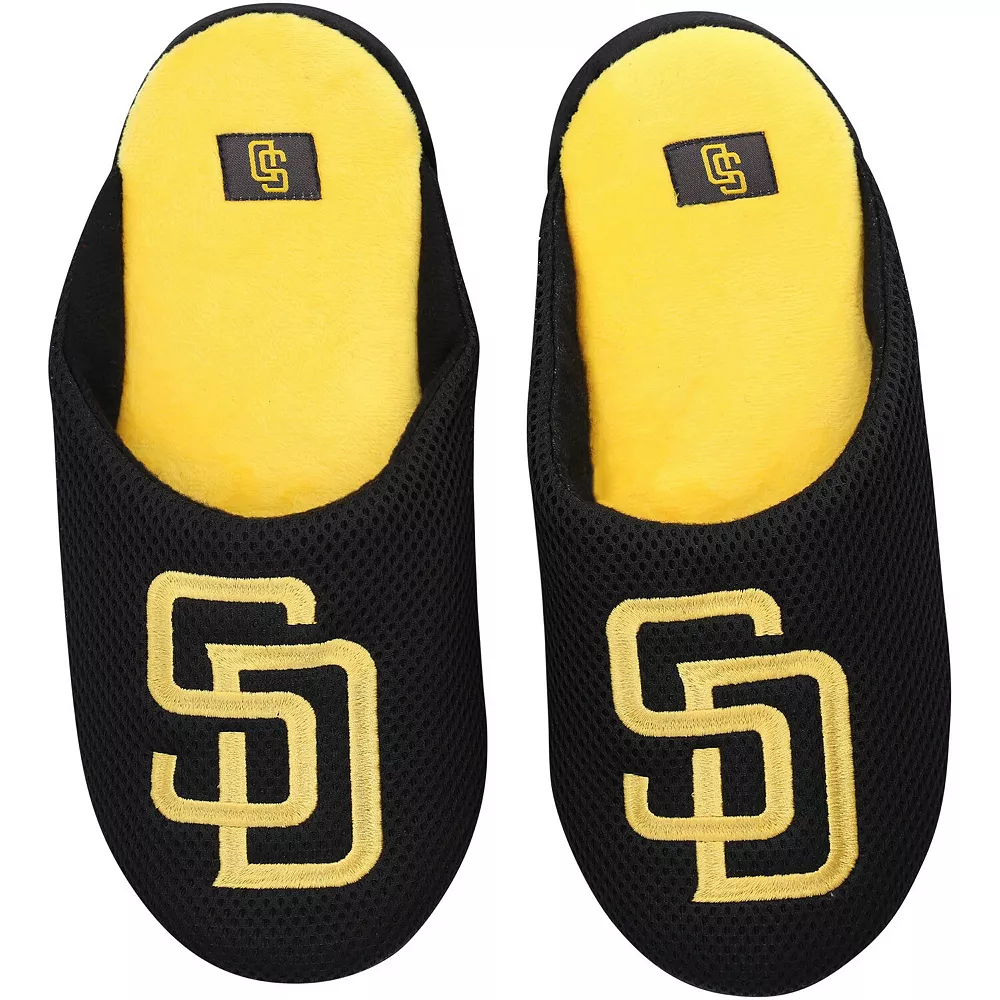 Kick back and keep your San Diego Padres spirits high with these Big Logo Colorblock mesh slippers from FOCO. A must-have for any devout San Diego Padres fan, they provide a soft, warm feel and show off large team graphics and colors. You’ll love putting on these slippers first thing each morning, especially on a cold day.