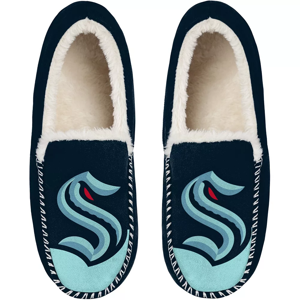 Slip your feet into some cozy Seattle Kraken spirit by grabbing these FOCO Colorblock mocassin slippers. Ideal for lounging at home, the slip-on style and ultra-soft lining ensure a comfy fit. Plus, the striking Seattle Kraken graphics and vibrant colorway show off your pride with every step you take.