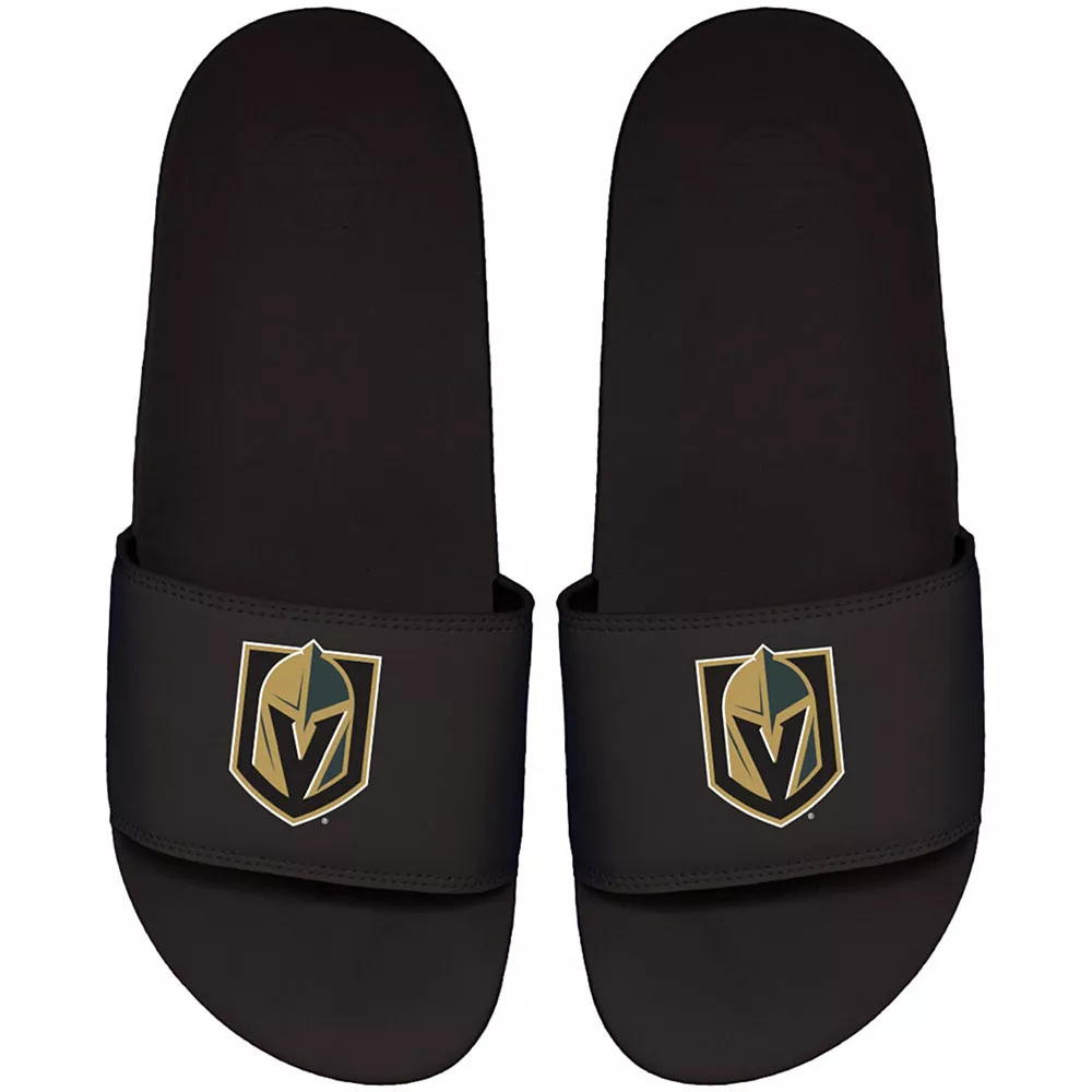 Slip these Vegas Golden Knights Primary Motto slides on and enjoy a comfortable addition to your selection of team gear. Perfect for any casual outing, these ISlide sandals feature the Vegas Golden Knights logo printed on each of them and the built-in arch support allows for a quality feel.
