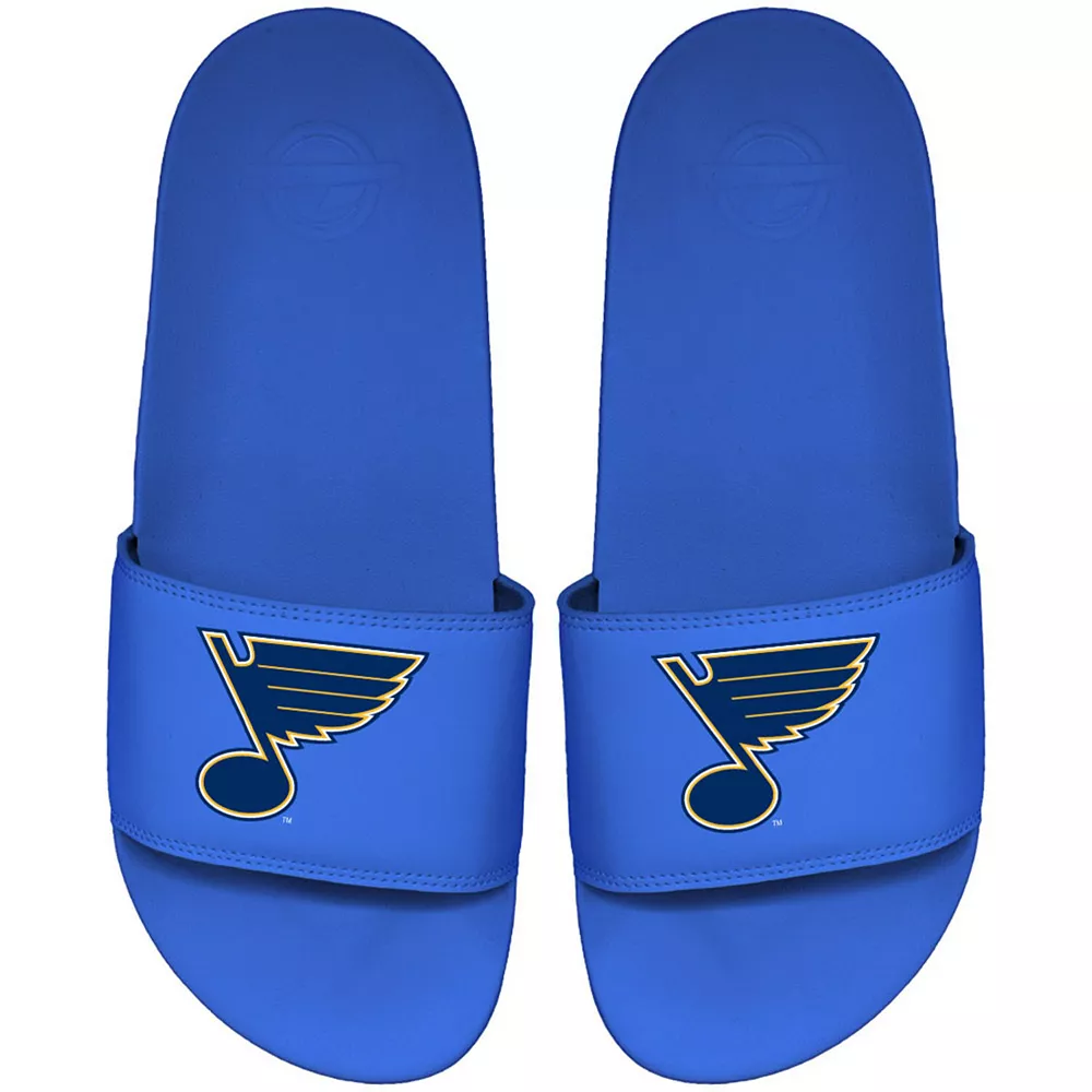 Slip these St. Louis Blues Primary Motto slides on and enjoy a comfortable addition to your selection of team gear. Perfect for any casual outing, these ISlide sandals feature the St. Louis Blues logo printed on each of them and the built-in arch support allows for a quality feel.
