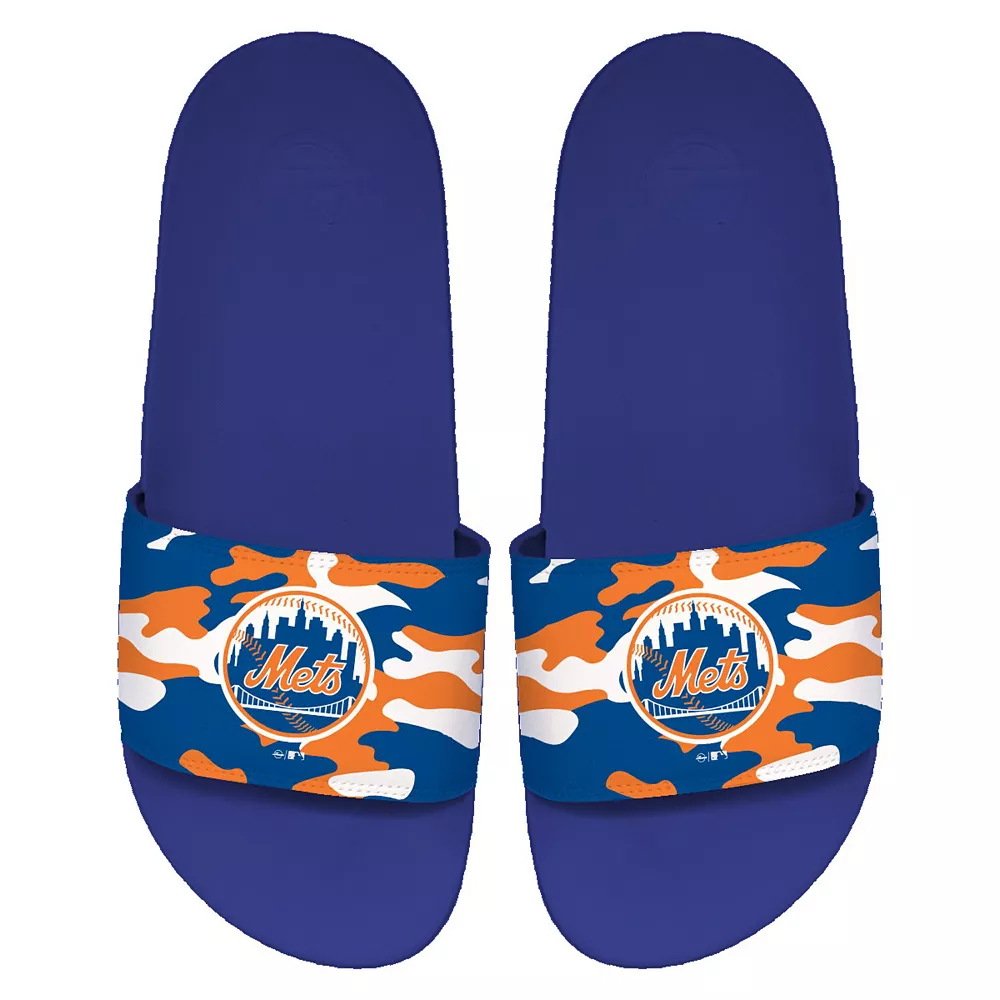 When you wear these Motto slide sandals from ISlide, you can fill every step you take with team spirit. They feature a stylish camo design and the iconic New York Mets logo. The built-in arch support ensures a comfortable wear experience everywhere you go.