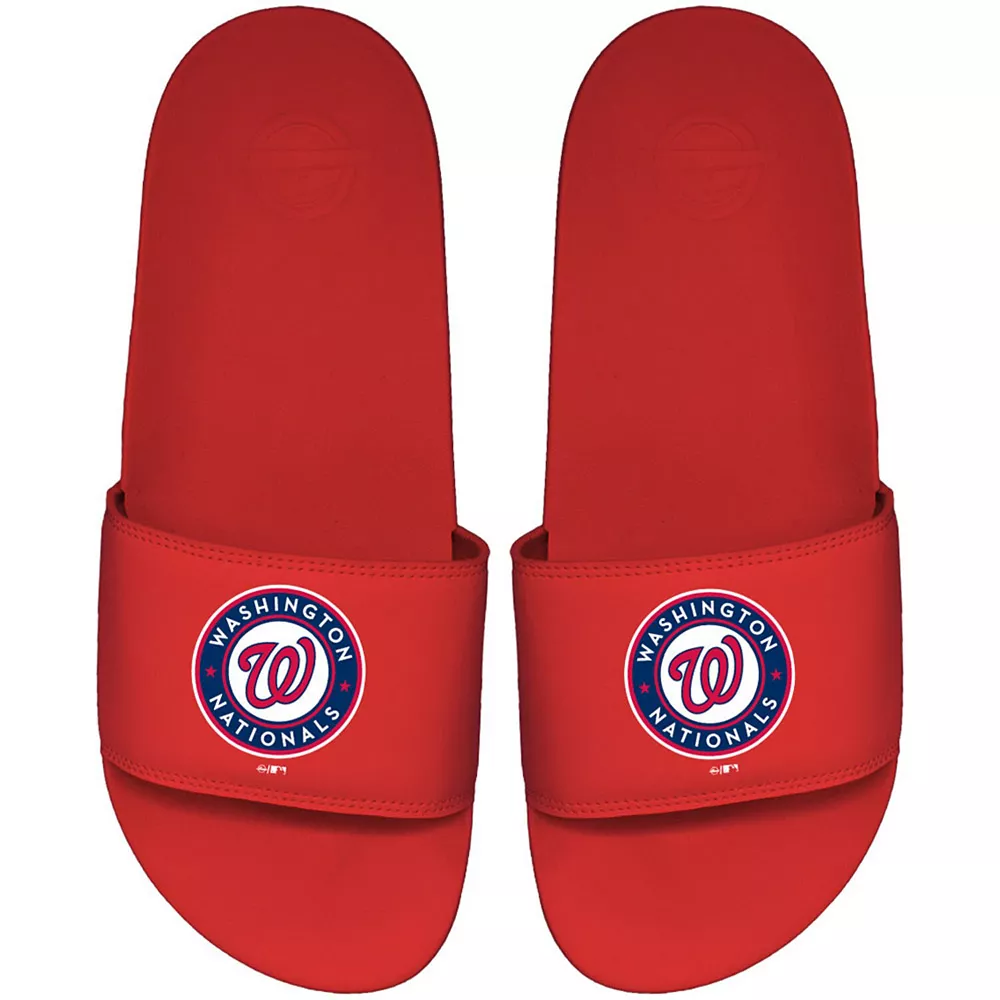 Slip these Washington Nationals Primary Motto slides on and enjoy a comfortable addition to your selection of team gear. Perfect for any casual outing, these ISlide sandals feature the Washington Nationals logo printed on each of them and the built-in arch support allows for a quality feel.