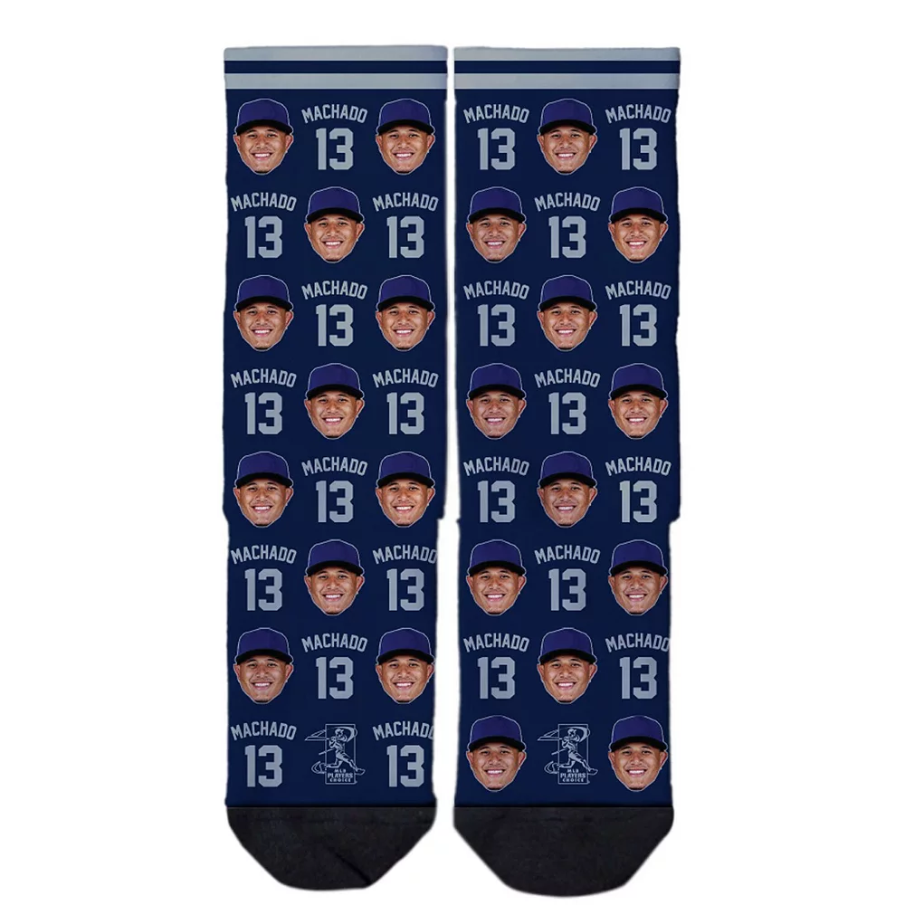 Rock Manny Machado on your feet this season with these awesome Player Head crew socks from Strideline. These feature graphics that will have you ready to pick up the lumber yourself and swing for the fences. Sport these with the rest of your favorite Manny Machado gear for a spirited look you can be proud to wear on game day.